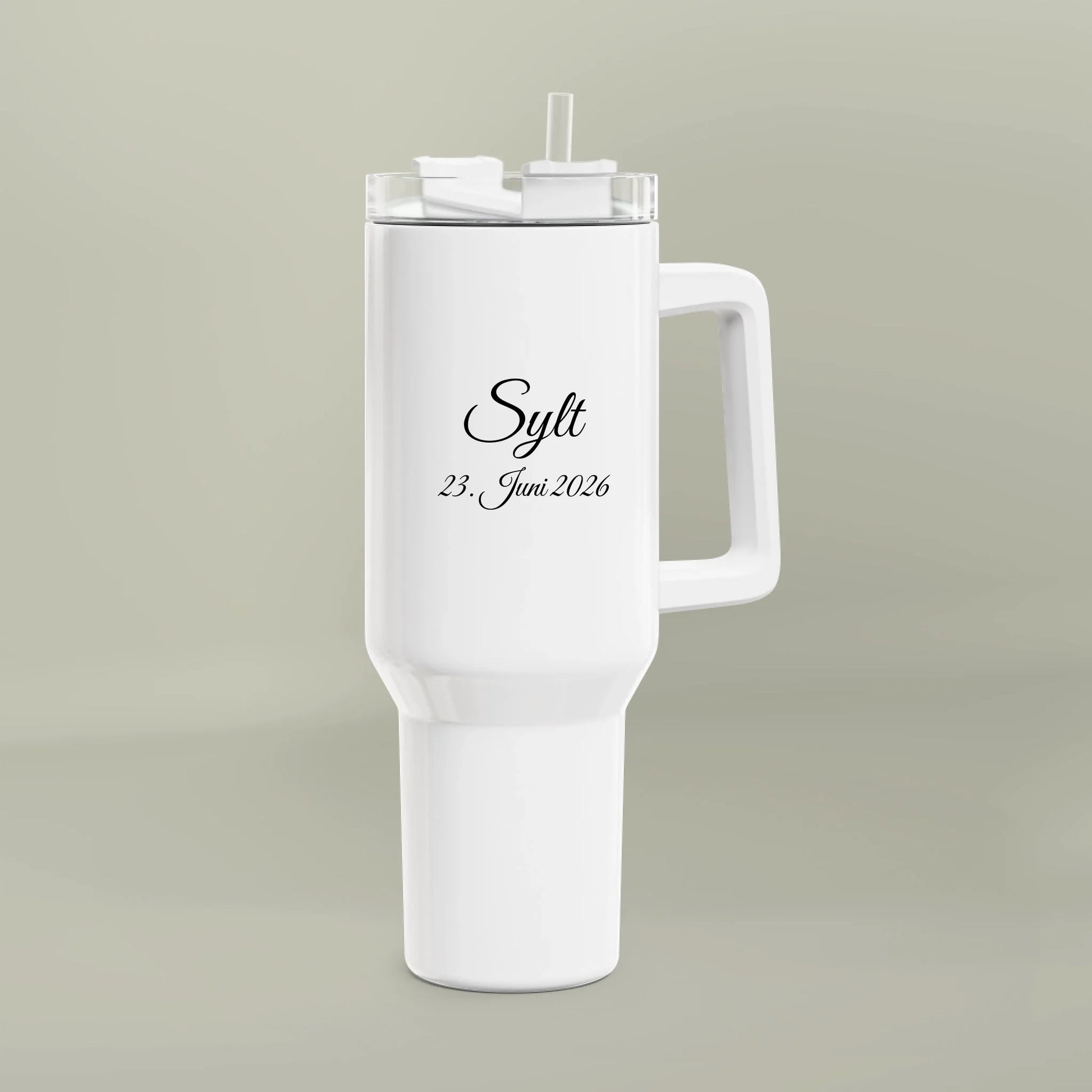 Dieser personalisierte Becher besteht aus robustem Edelstahl mit einer eleganten ORCA-Beschichtung für zusätzlichen Stil und Schutz. Der Kunststoff-Druckverschluss sorgt für eine einfache Handhabung. Die doppelwandige Vakuumisolierung hält Ihre Getränke lange warm oder kalt und ist somit perfekt für jedes Abenteuer, Picknick oder Grillabend im Garten.